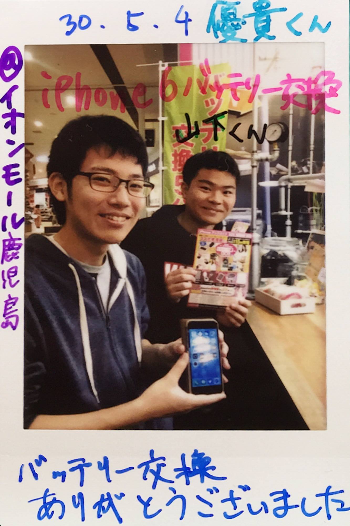 5/4 iPhone6バッテリー交換 イオンモール鹿児島店へ 山下様・優貴様