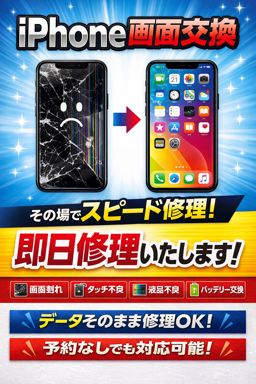 このようにスマホ119ではiPhoneの修理を即日で終わらす事ができます
