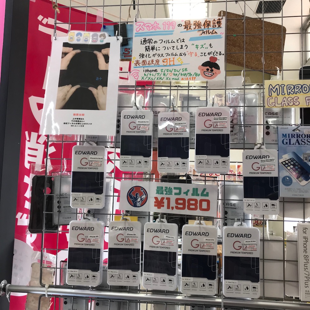 iPhoneの強化ガラスフィルム1980円+税で販売中♪