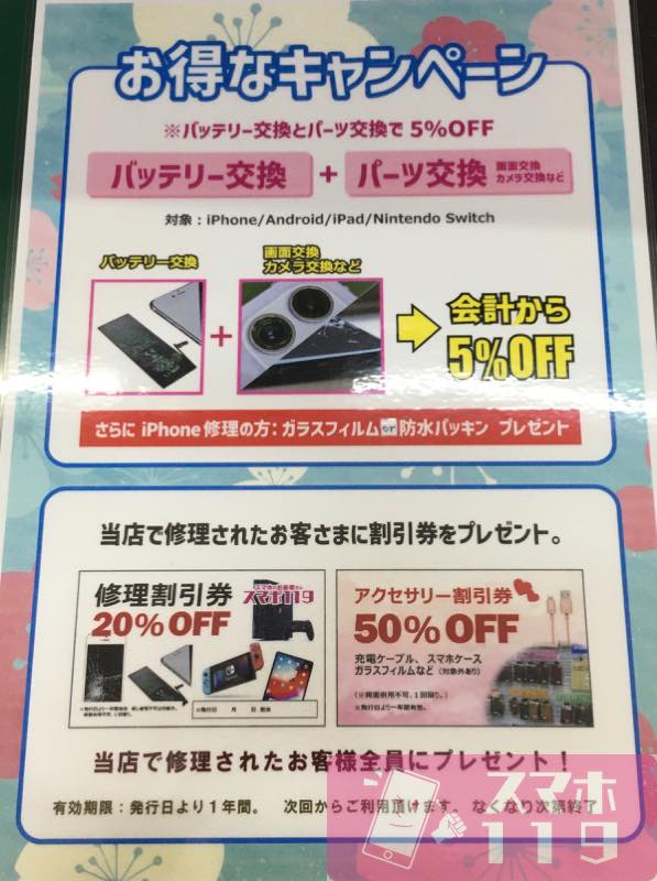 さらに、修理されたお客様には次回以降使える割引券もプレゼントさせていただきます。