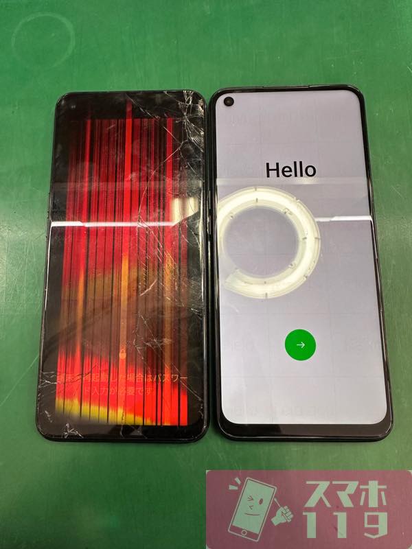 左の液晶破損の端末から