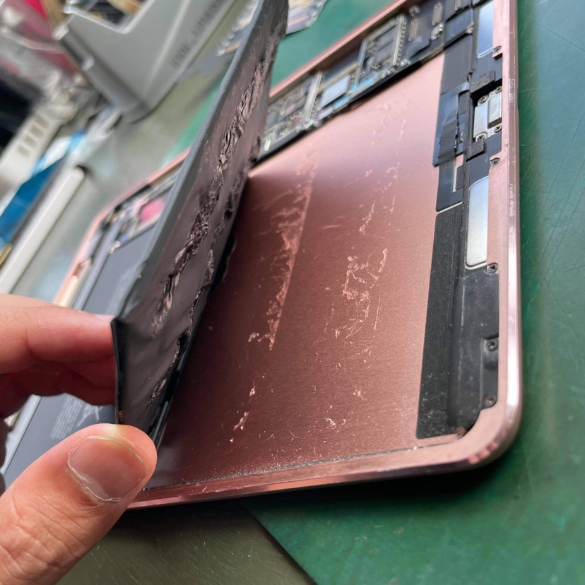 バッテリーが膨張して画面を押し上げています。