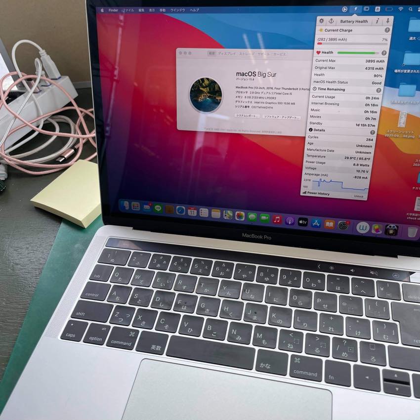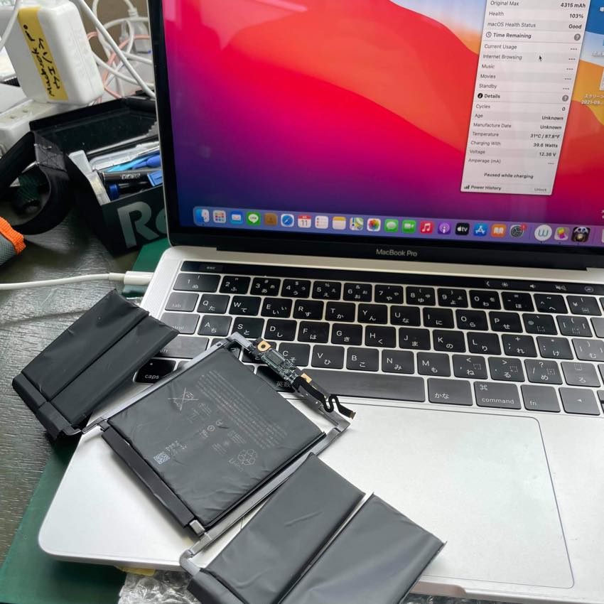 バッテリーの交換目安は購入して1年半から2年ごろまたは最大容量が87%以下になると目安ですかね〜。。。