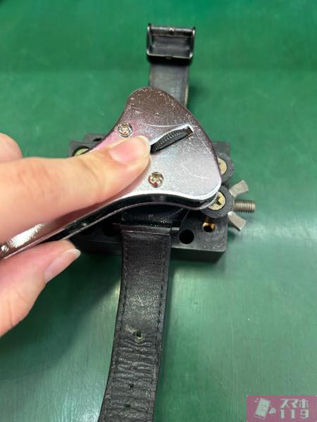 傷をつけないように、工具を使って慎重に裏蓋を回します!