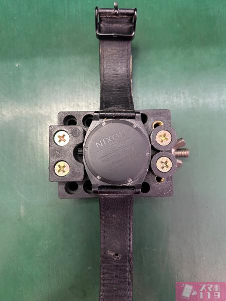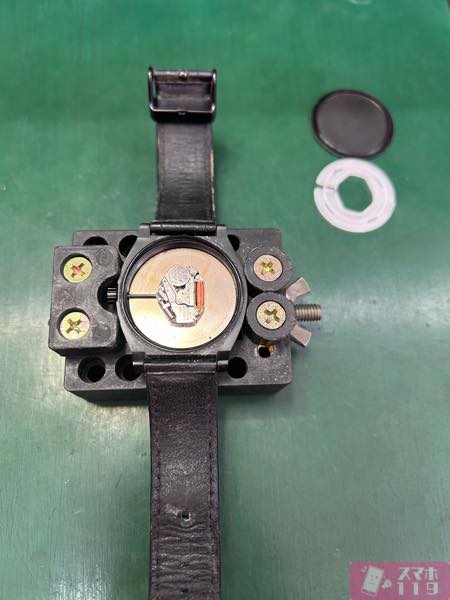 この時に固定台から一度外して、時計の針が動いているか確認してから裏蓋を閉めます。