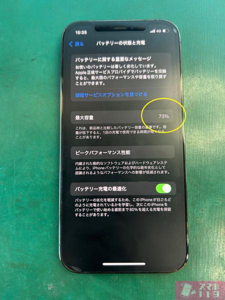 「バッテリーが著しく劣化してます」の表示も出ています!