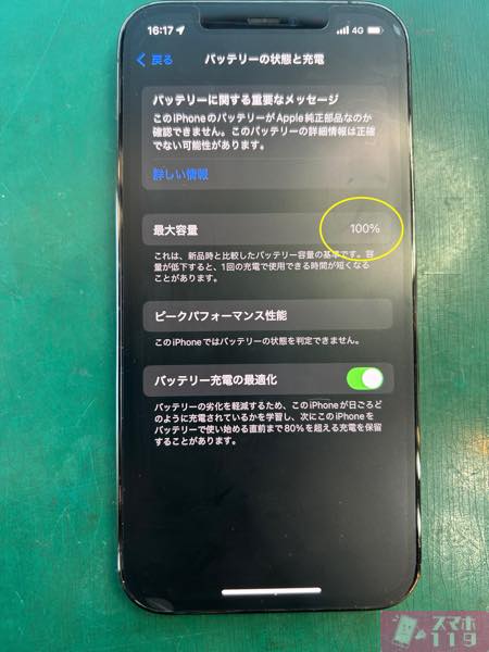 バッテリーの最大容量も100%になりました!!