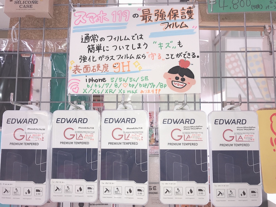 スマホ119には 安くて可愛いケース 頑丈な保護フィルムなど