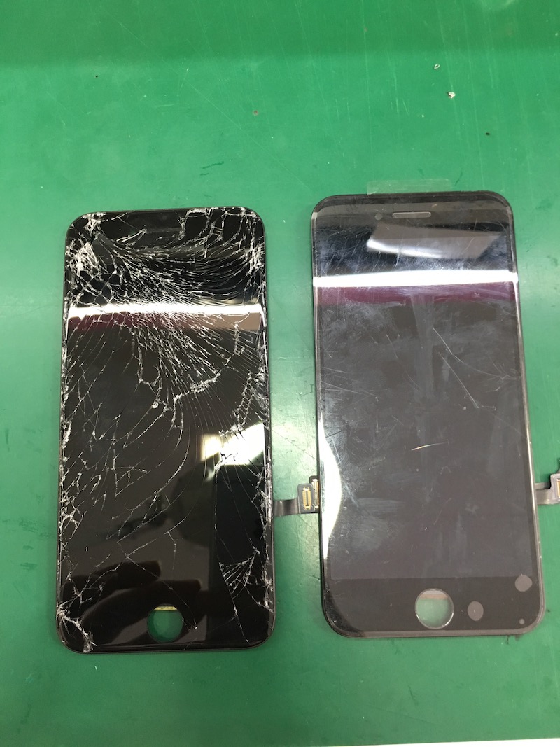 実はiphoneの画面ってガラスと液晶がセットになっているので、画面割れでも液晶破損でも作業自体は変わらないんです。