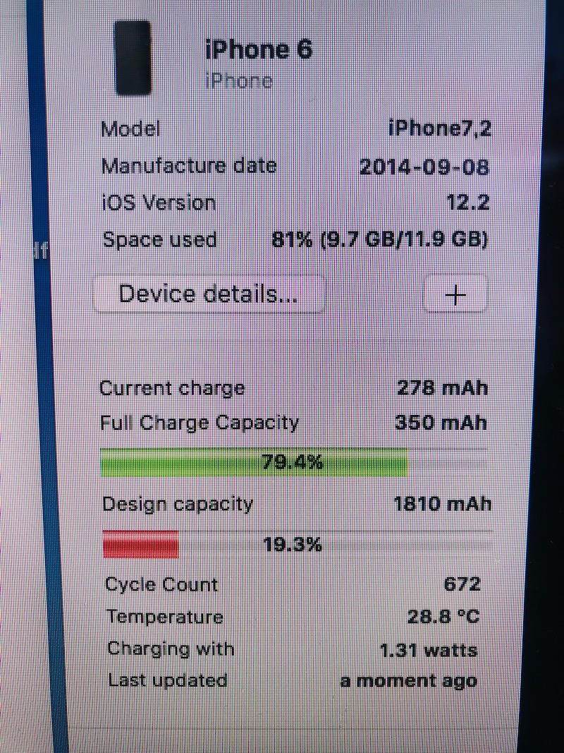 iphone上では100%まで充電したとしても、実際には19.3%までしか充電できないということです…