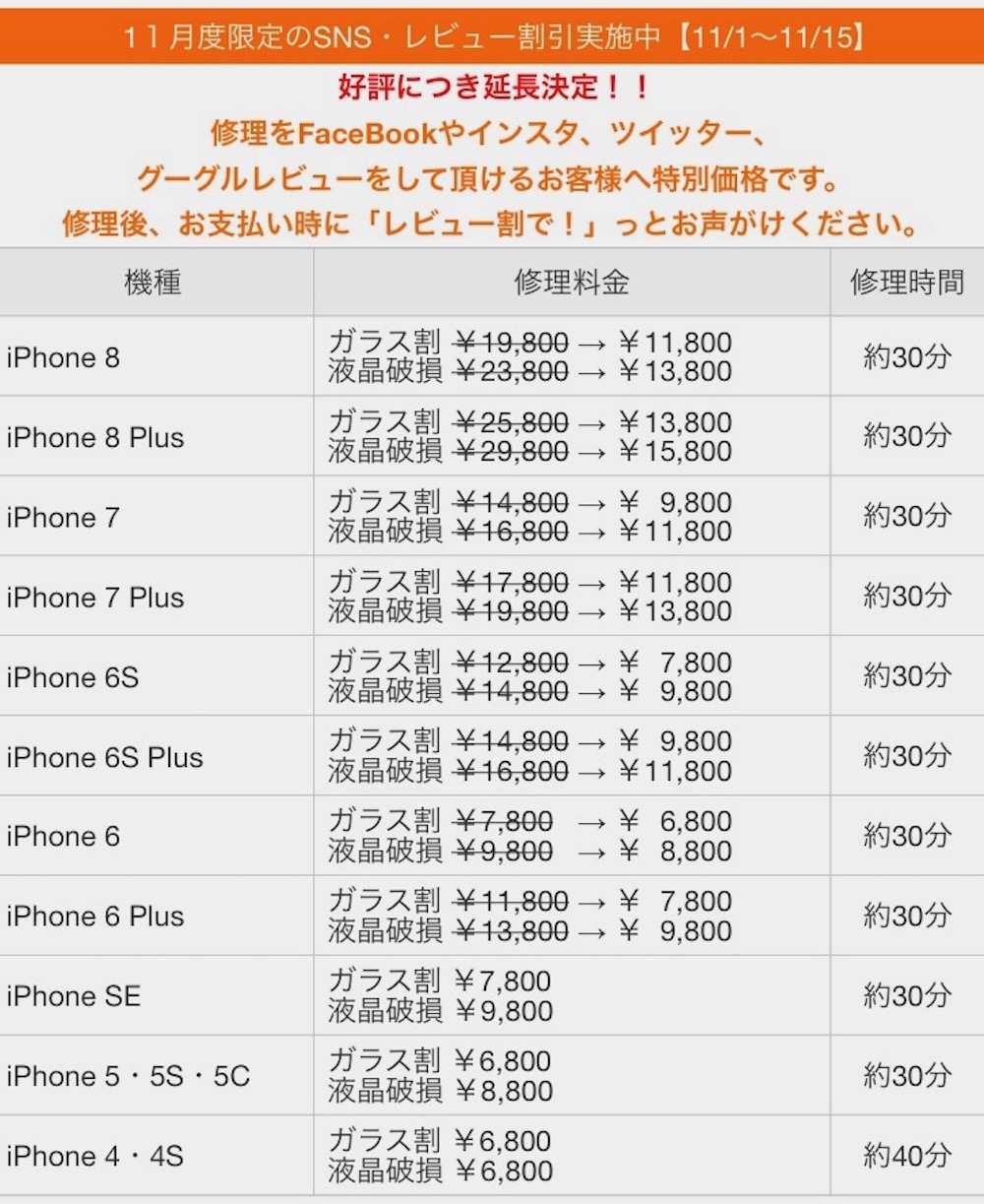 画面割れなら30分くらいで直せるのでその間、観光するのもいいですよね!