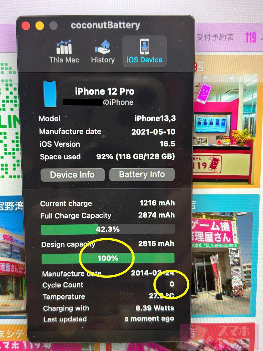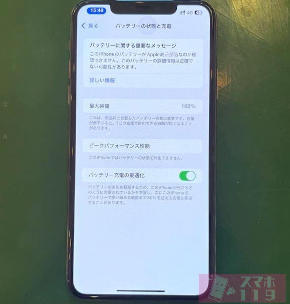 バッテリーの最大容量が100%に元通り!!