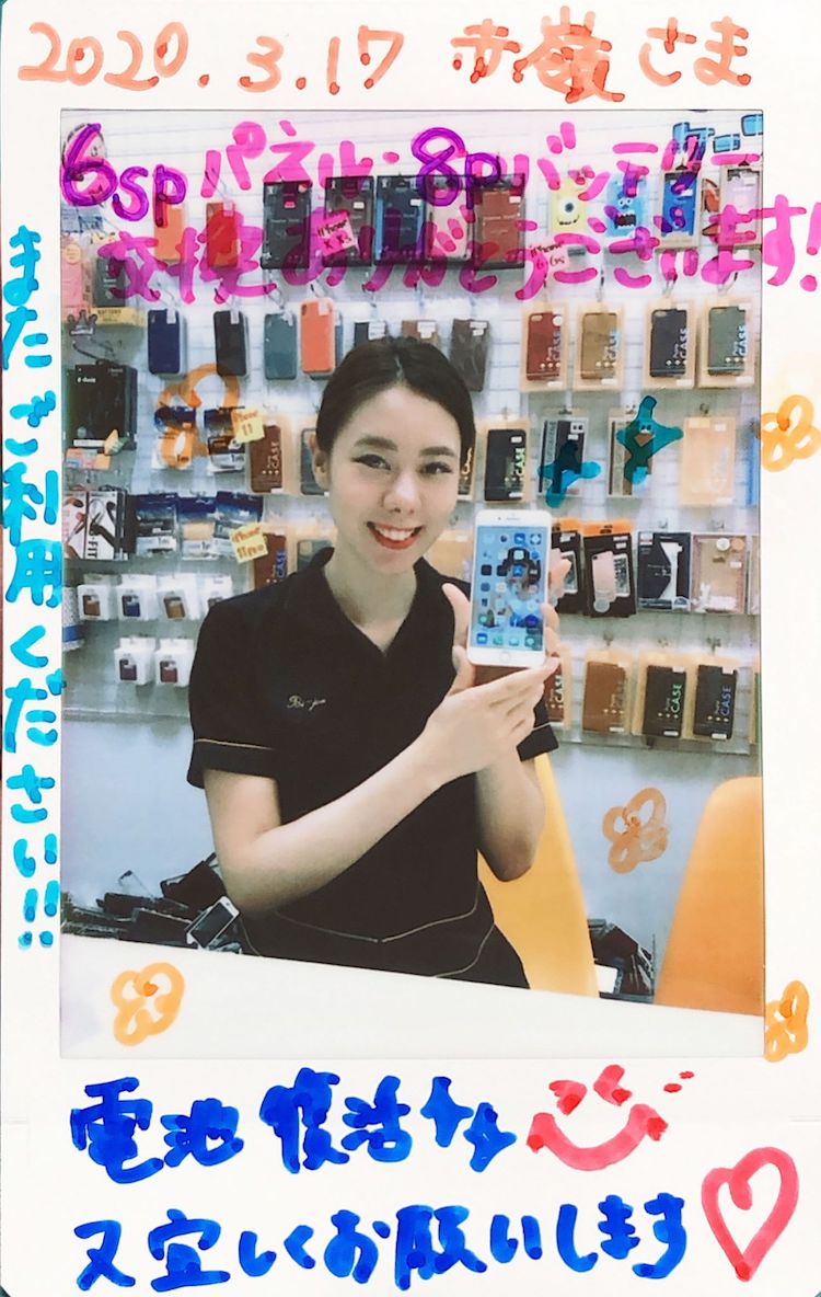 3/17 iPhone6sp画面交換・8pバッテリー交換 とよみ店へ 赤嶺様
