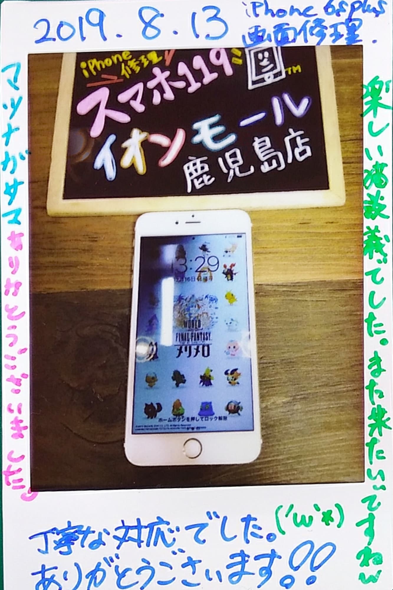 8/13 iPhone6sp画面交換 イオンモール鹿児島店へ マツナガ様