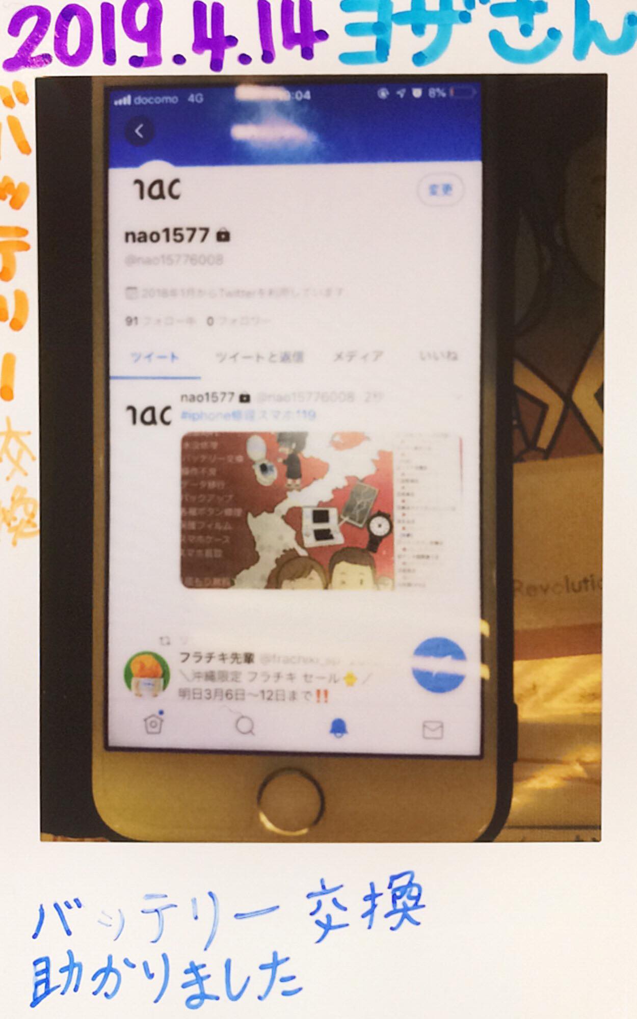 4/13 iPhone7バッテリー交換 宜野湾店へ オオカワ様