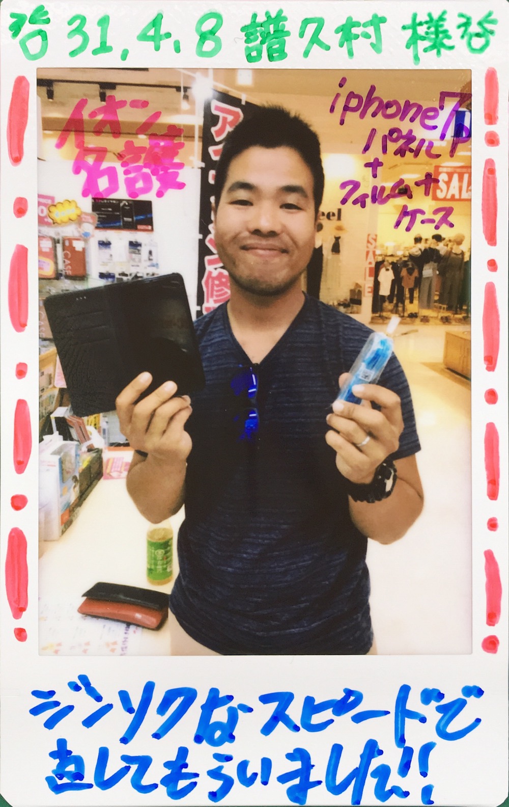 4/8 iPhone7p画面交換+保護フィルム+ケースご購入 イオン名護店へ 譜久村様