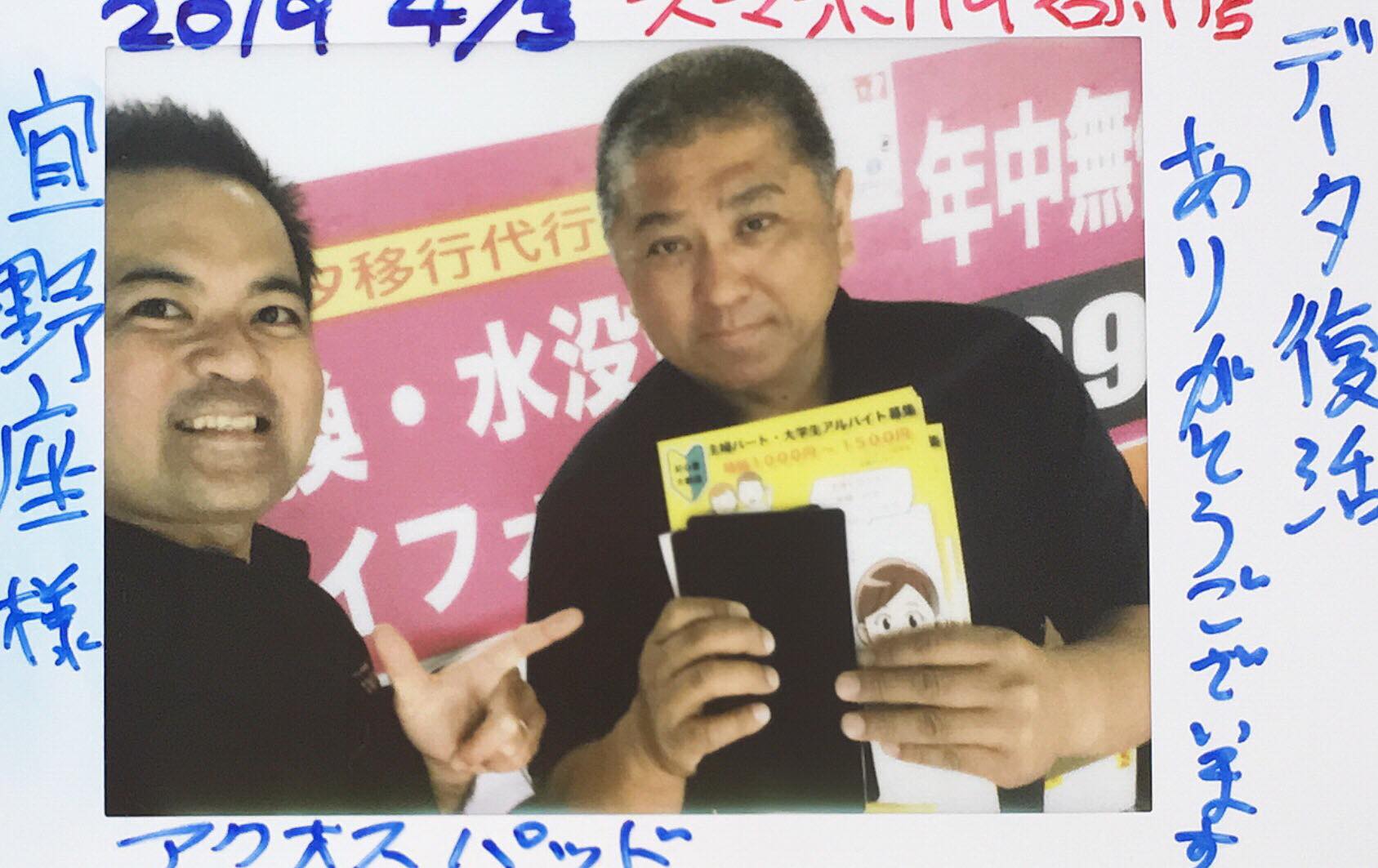 4/3 AQUOSpadデータ復旧 石川店へ 宜野座様