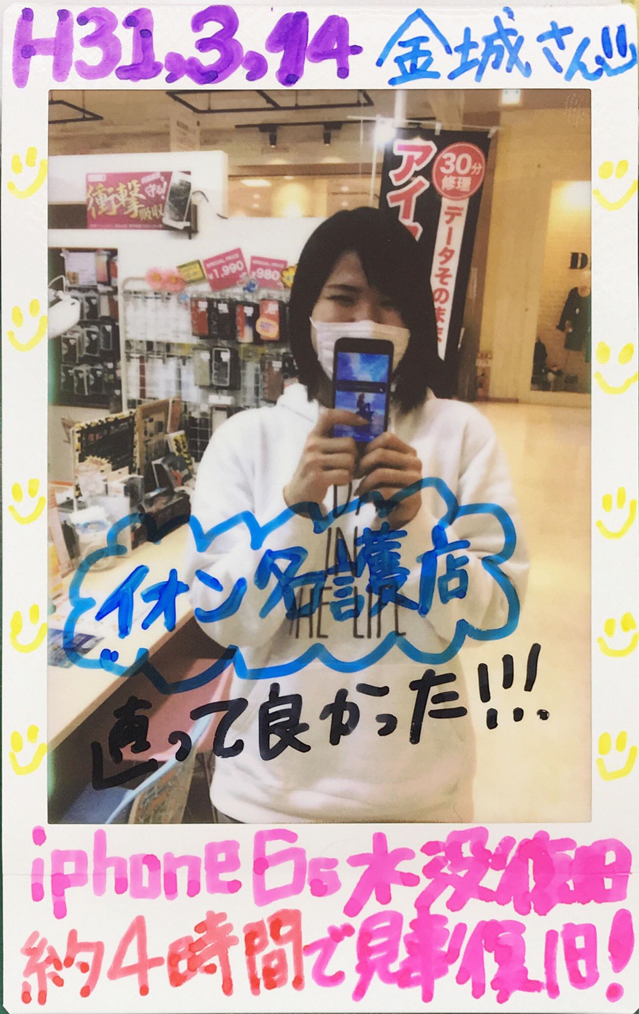 3/14 iPhone7p画面交換(2回目のご来店) イオンモール鹿児島店へ ナカモト様