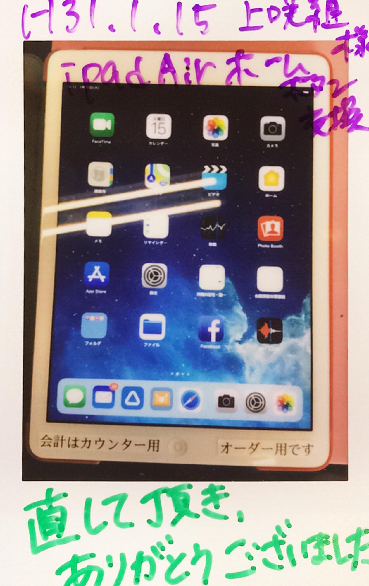 1/15 iPadAirホームボタン交換 宜野湾店へ 上咲組様