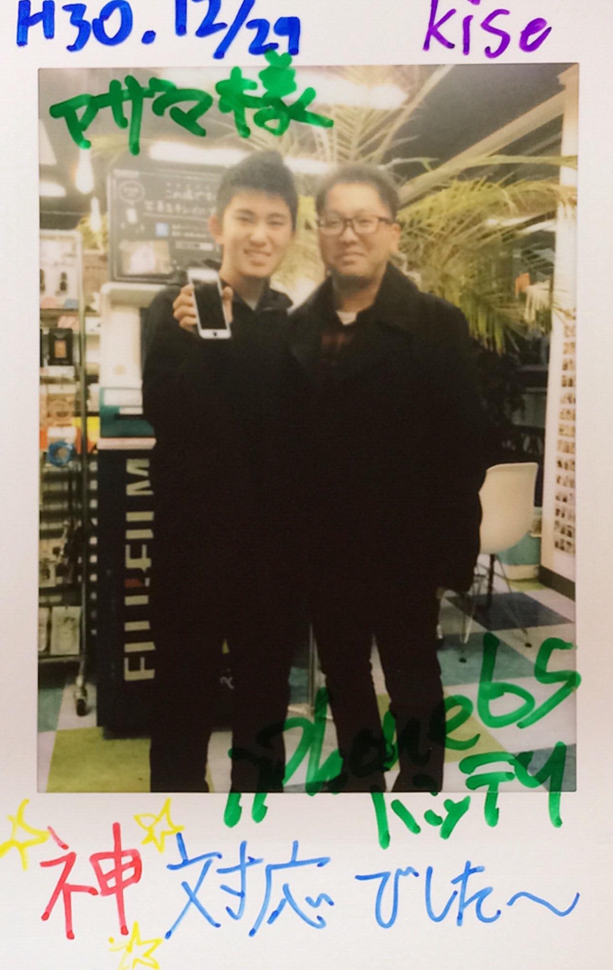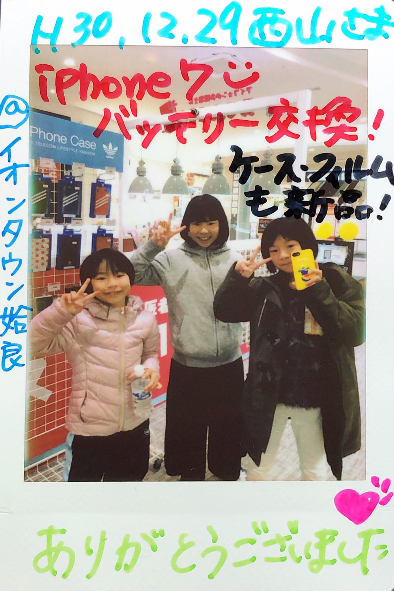 12/29 iPhone7バッテリー交換+スマホケース+保護フィルム購入 イオンタウン姶良店へ ニシヤマ様