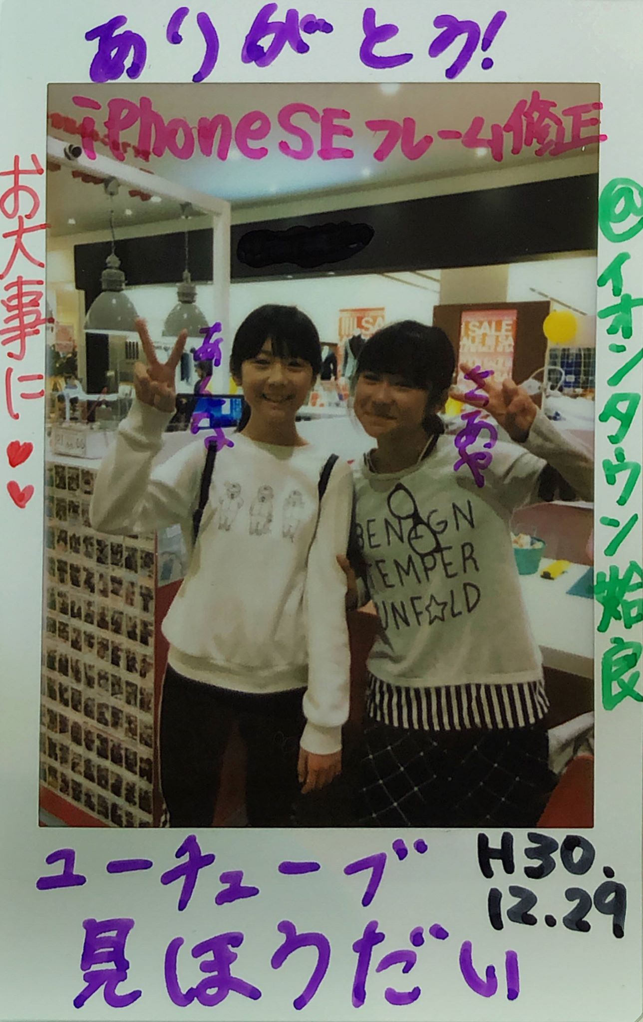 12/29 iPhoneSEフレーム修正 イオンタウン姶良店へ あんなちゃん・さあやちゃん