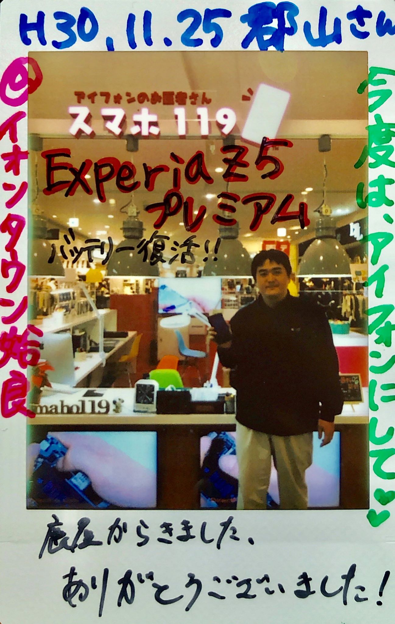 11/25 XperiaZ5premiumバッテリー交換 イオンタウン姶良店へ 郡山様