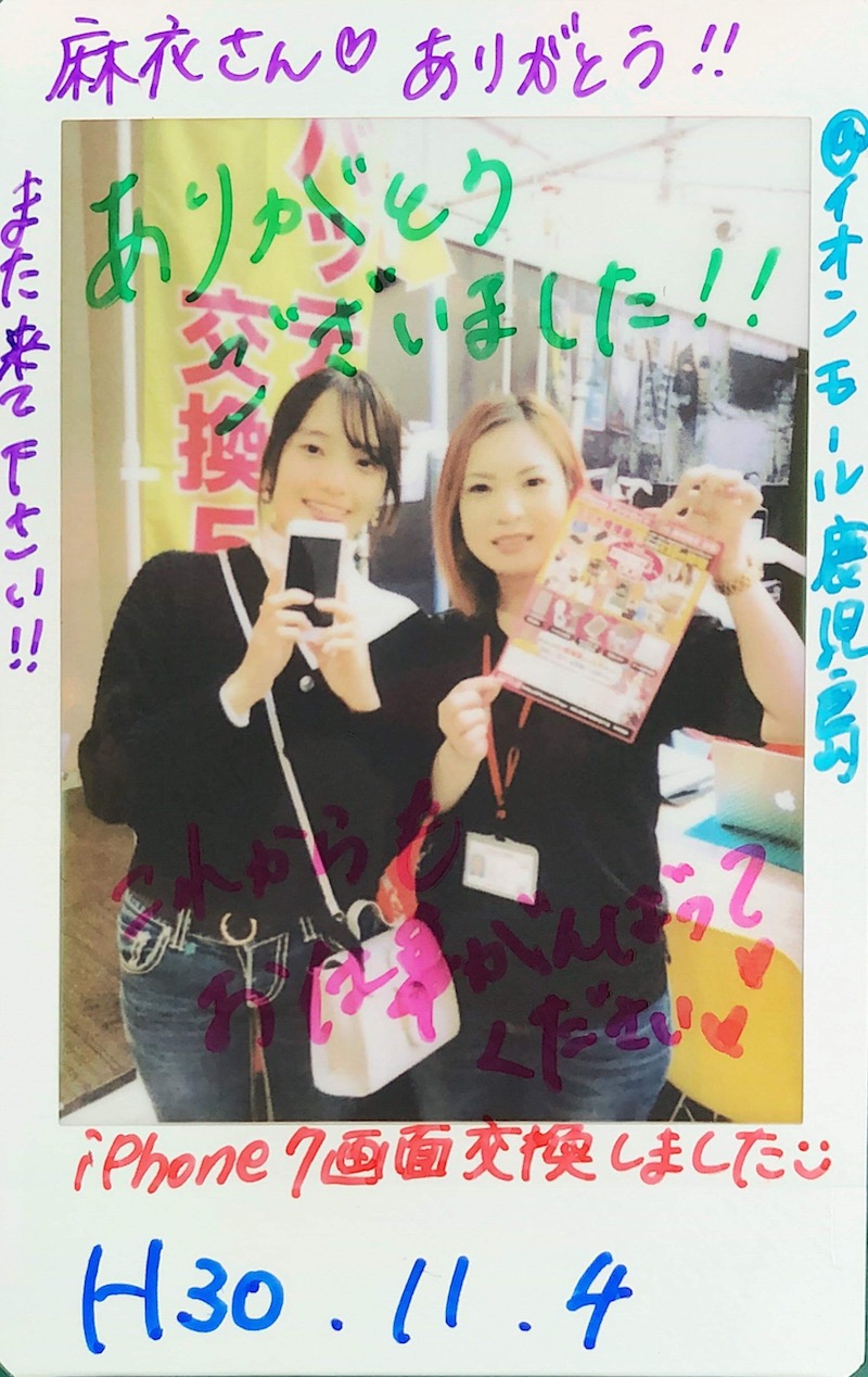 11/4 iPhone7 画面交換 イオンモール鹿児島店へ 麻衣様