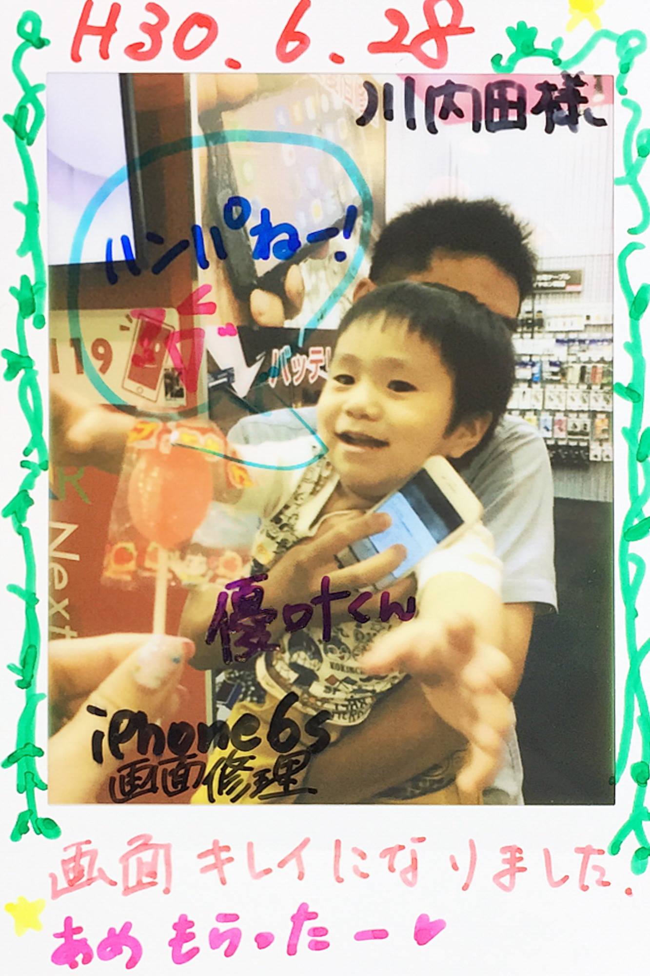 とノリのいいお客様でした! バッテリー交換から画面交換・フィルム・ケースとフルコースです笑