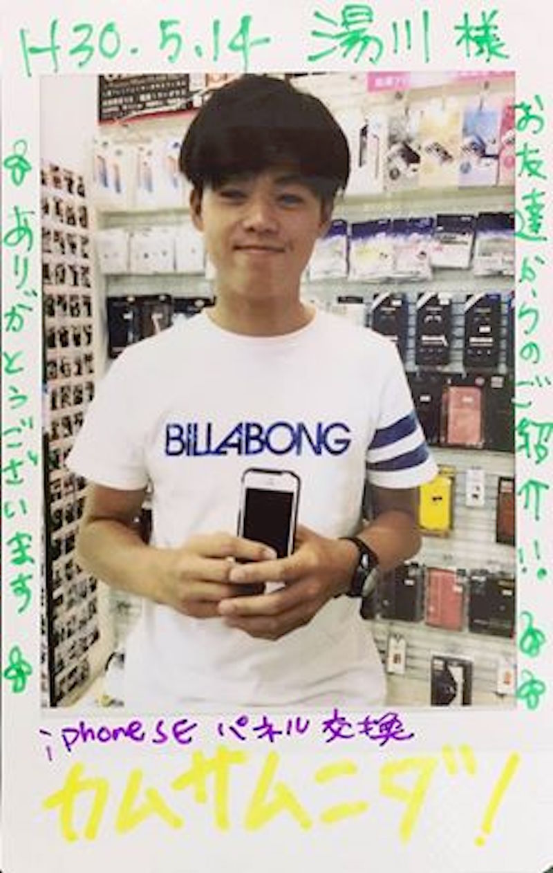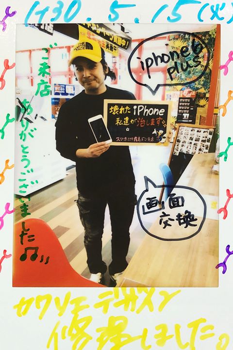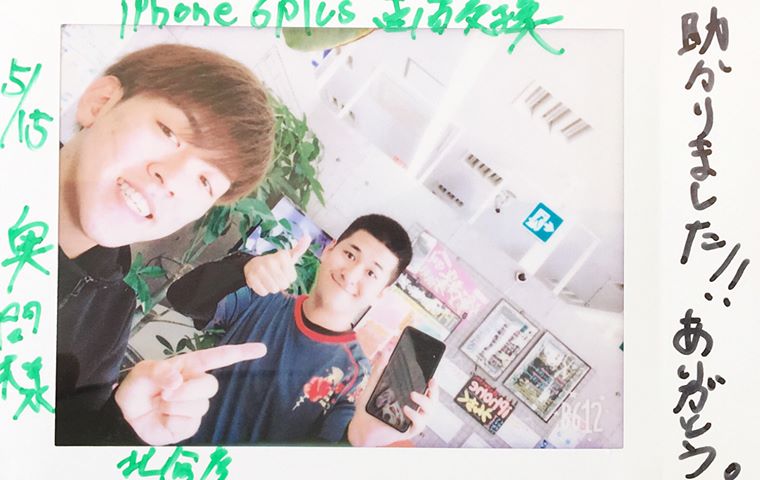 潤平くん。アイフォン 6s Plusのガラス割れ。