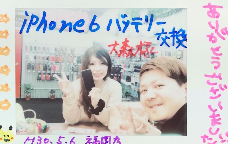 5/6 iPhone6 バッテリー交換 福岡東店へ 大森様