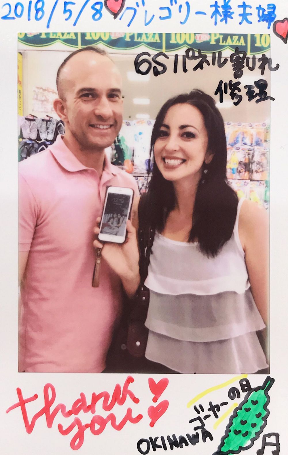 5/8 iPhone6s パネル交換 うるま店へ グレゴリー様ご夫婦