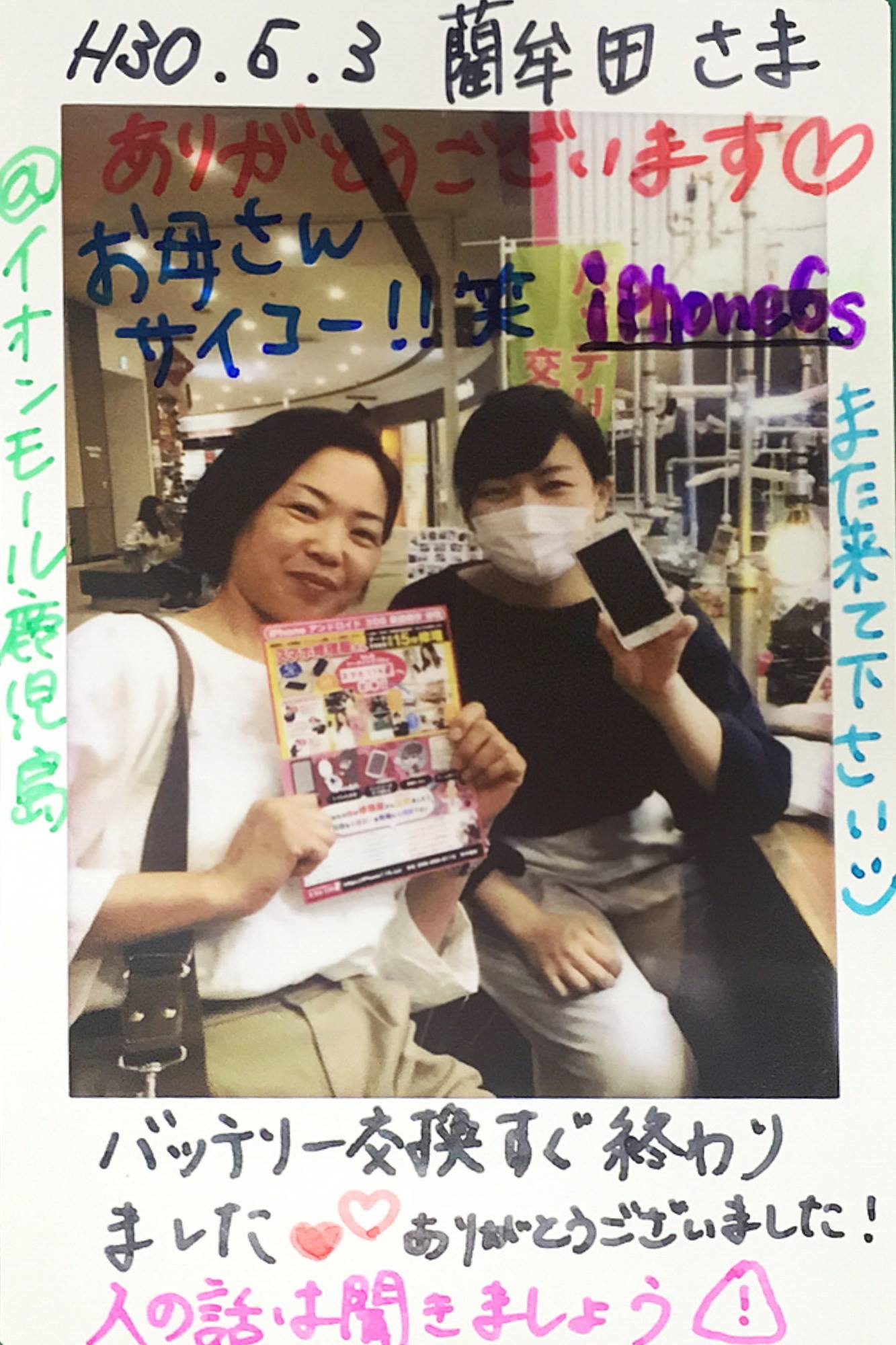 5/4 iPhone6バッテリー交換 イオンモール鹿児島店へ 山下様・優貴様