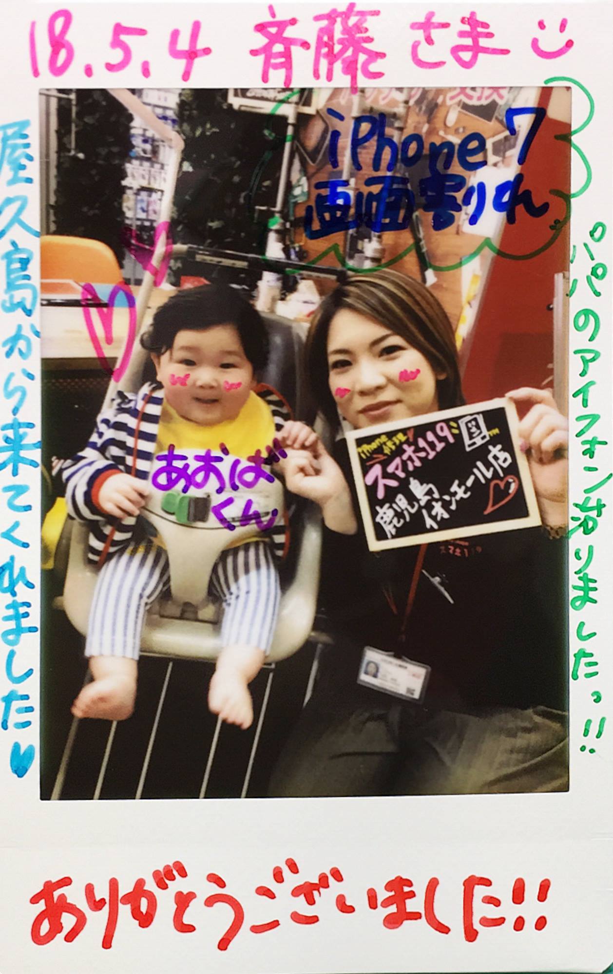 5/4 iPhone7 画面交換 イオンモール鹿児島店へ 斉藤様