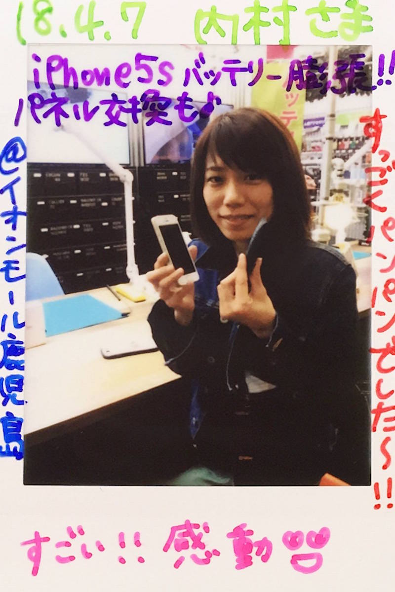 4/7 iPhone5s 画面・バッテリー交換 鹿児島イオンモール店へ 内村様