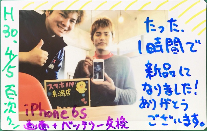 4/7 iPhone6 画面・バッテリー交換 とよみ店へ イトカズ様