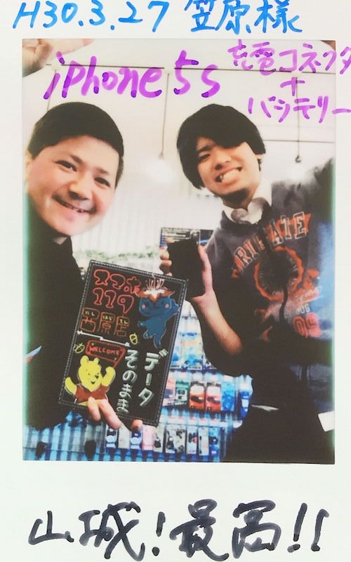 3/27 iPhone5s バッテリー・充電コネクタ交換 西原店へ 笠原様