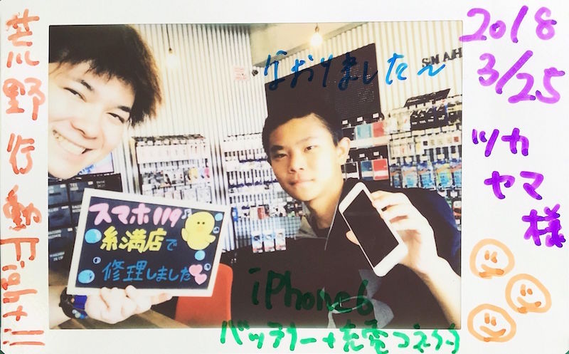 3/25 iPhone6 充電コネクタ・バッテリー交換 糸満店へ ツカヤマ様
