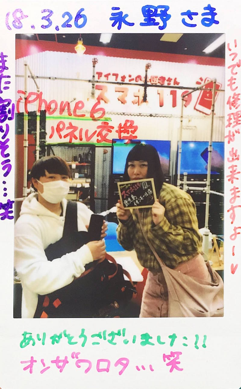 3/26 iPhone6 画面交換 鹿児島イオンモール店へ 永野様
