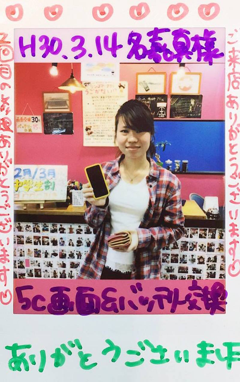 3/14 iPhone5c 画面・バッテリー交換 南城店へ 名嘉真様