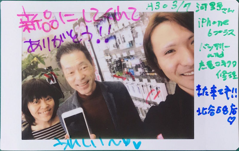 3/7 iPhone6Plus バッテリー・充電コネクタ交換 北谷店へ 河野様