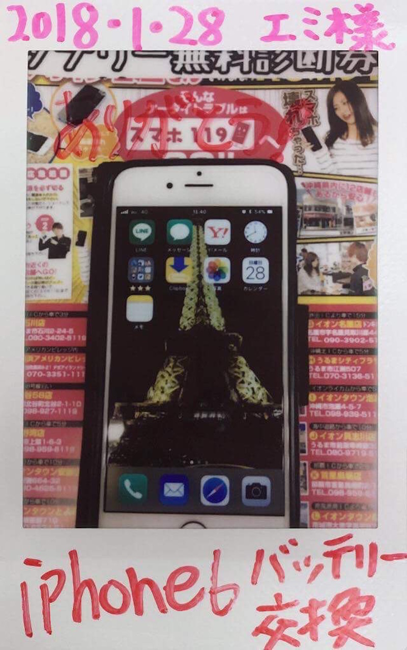 1/28 iPhone6 バッテリー交換 具志川店へ エミ様