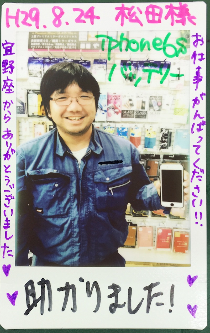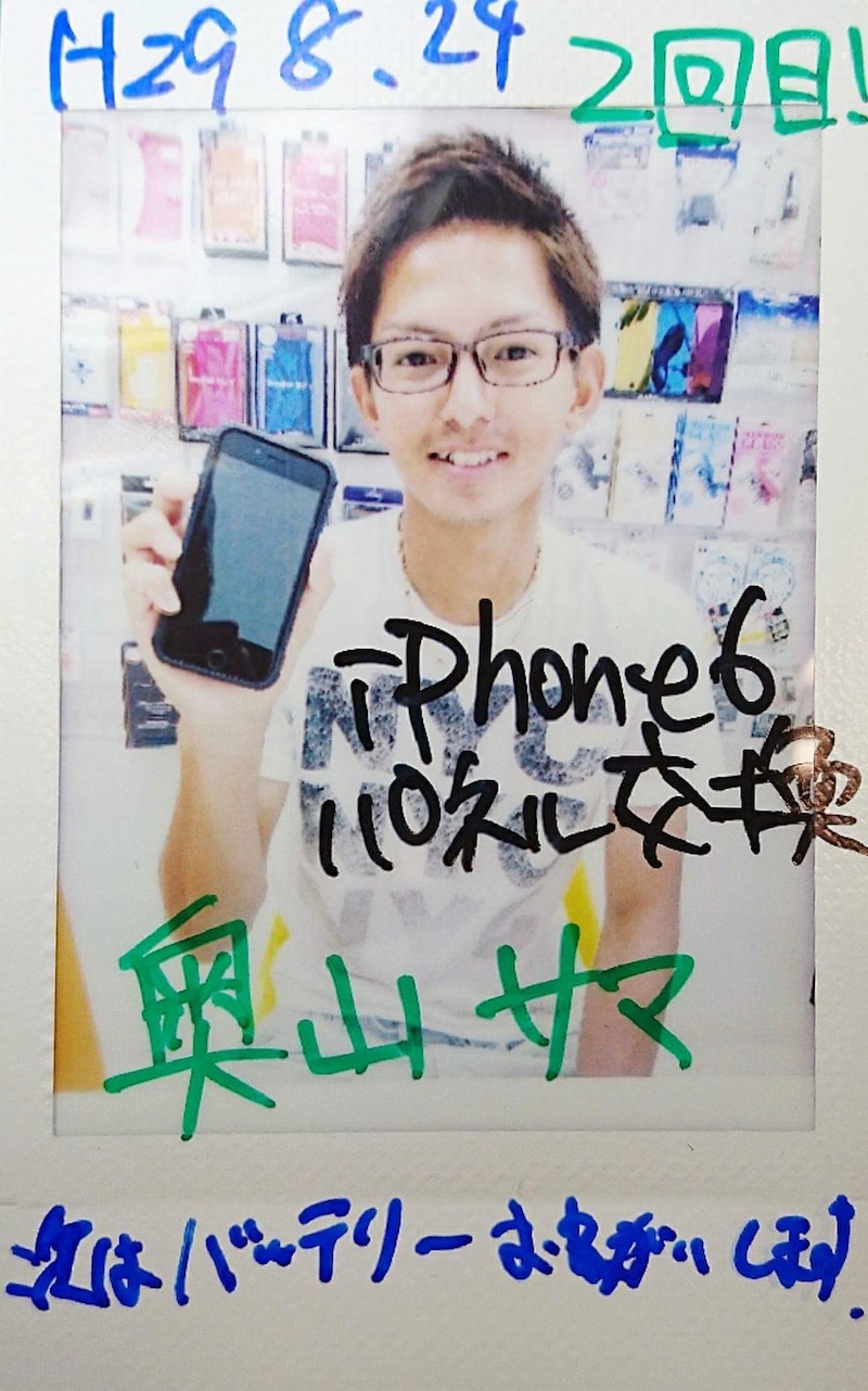 8/24 iPhone6 バッテリー交換 あいら店へ 野間口様