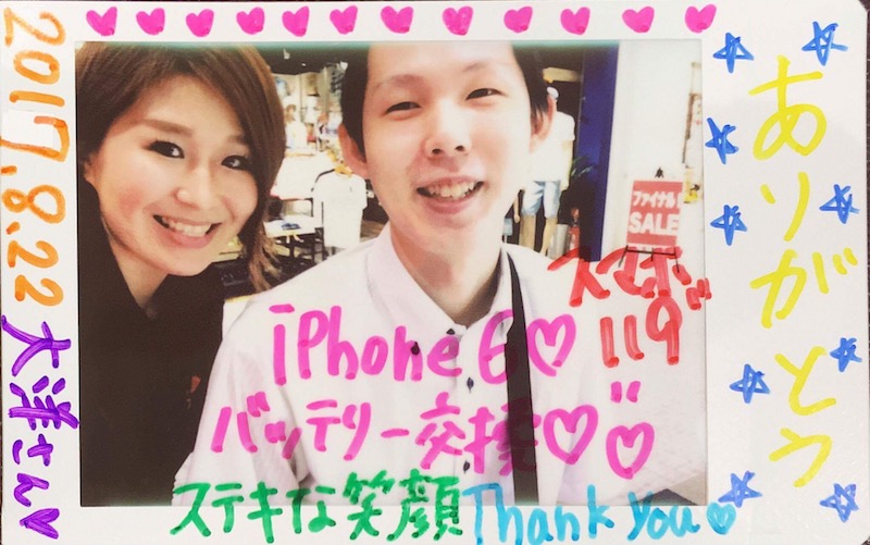 8/22 iPhone6 バッテリー交換 あいら店へ 大洋さん