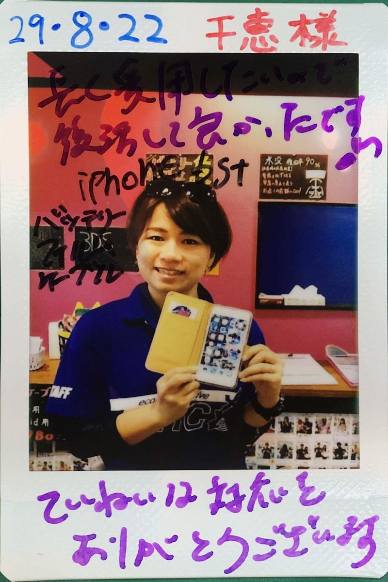 8/22 iPhone6sPlus バッテリー交換 南城店へ 千恵様