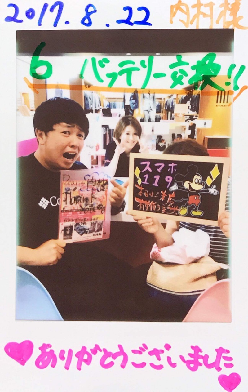 8/22 iPhone6 バッテリー交換 あいら店へ 内村様