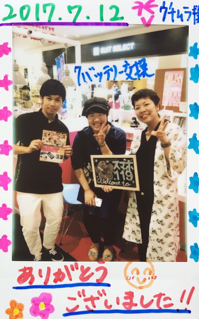 7/12 iPhone7 バッテリー交換 あいら店へ ウチムラ様