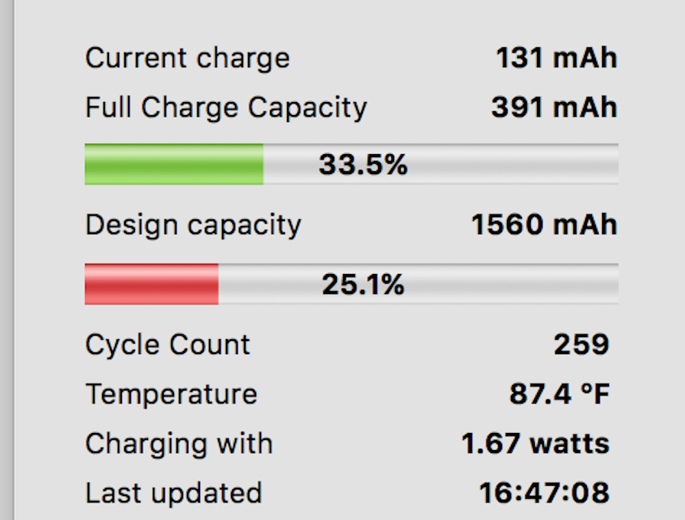 3ヶ月で充電回数が259回最大充電容量が25.1%という状況でした。。。