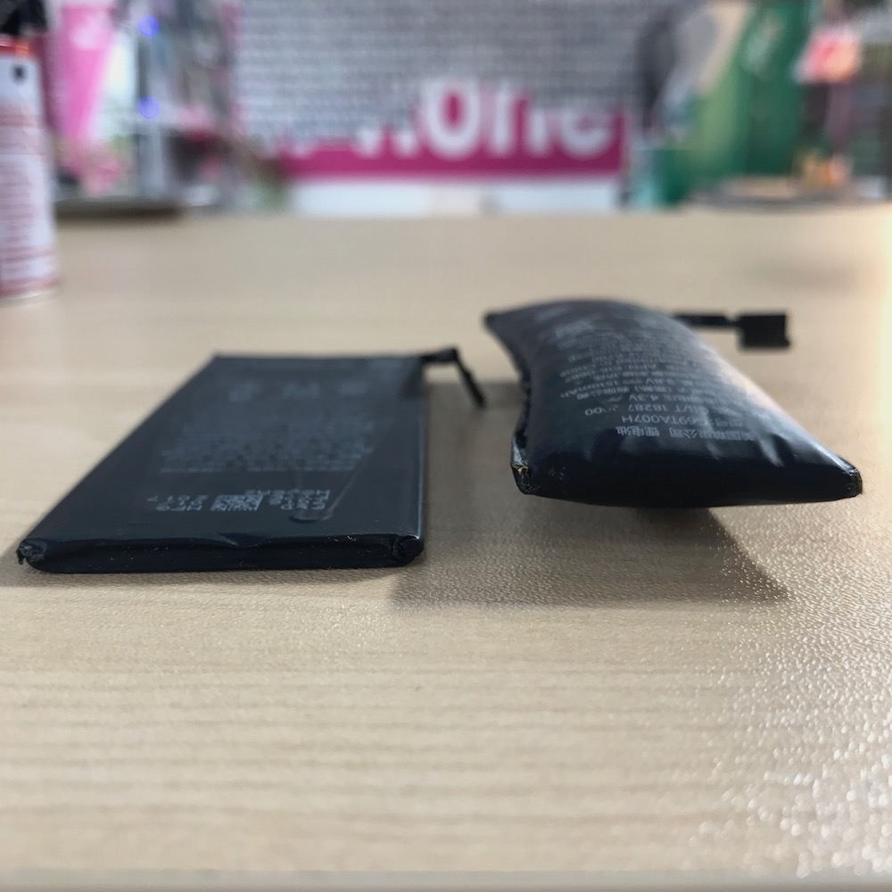 新品と膨張したバッテリーを比較してみましょう