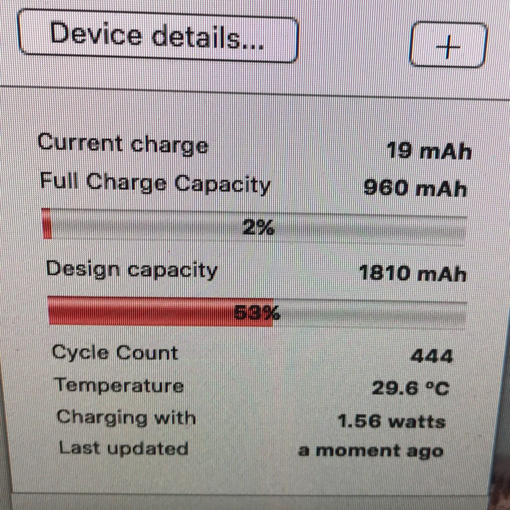 どれだけ充電しても実際には80%、ひどいとこの写真のように
