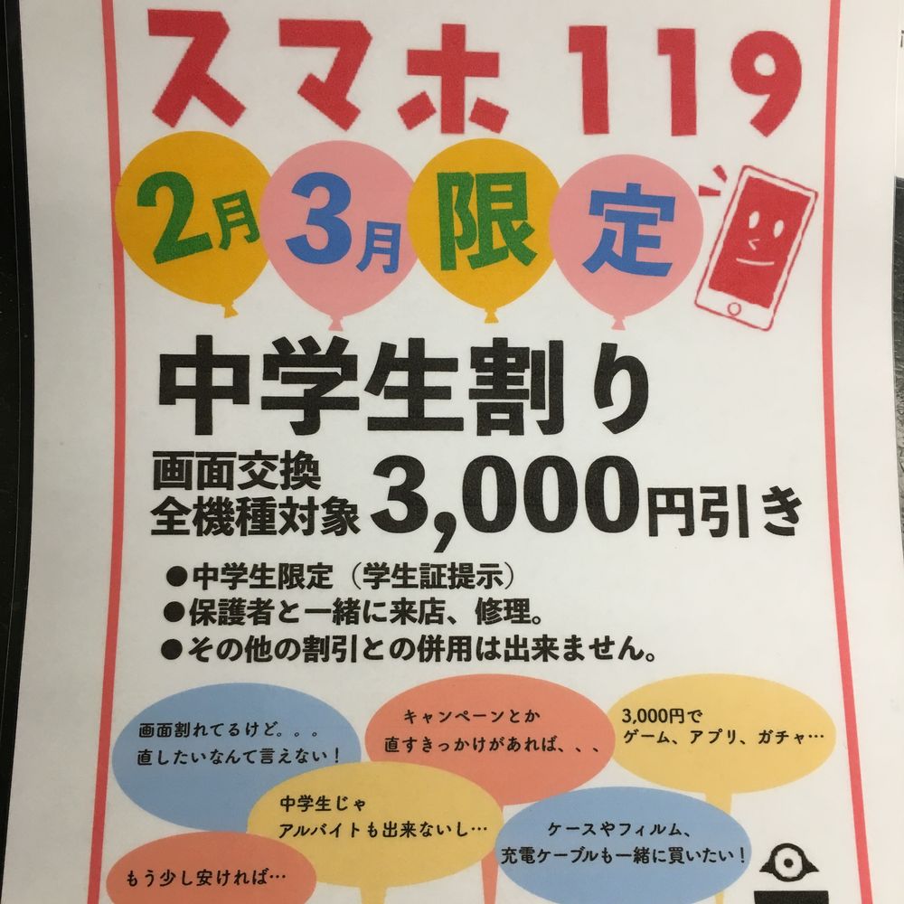 ここで早速キャンペーンのお話ですが、中学生割が本日までとなります。